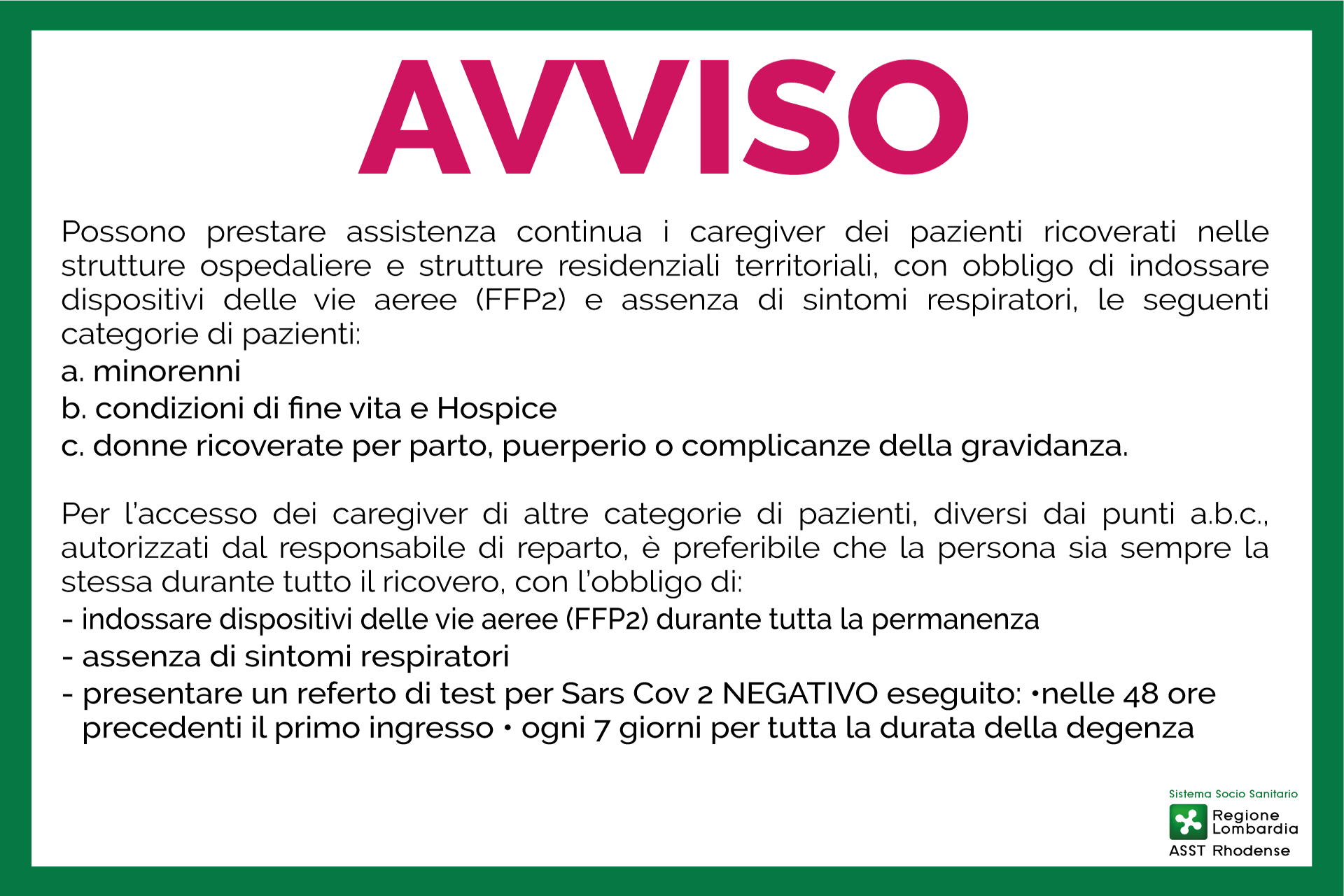 Per ogni necessità clinico-assistenziale si invita a rivolgersi al proprio medico curante.